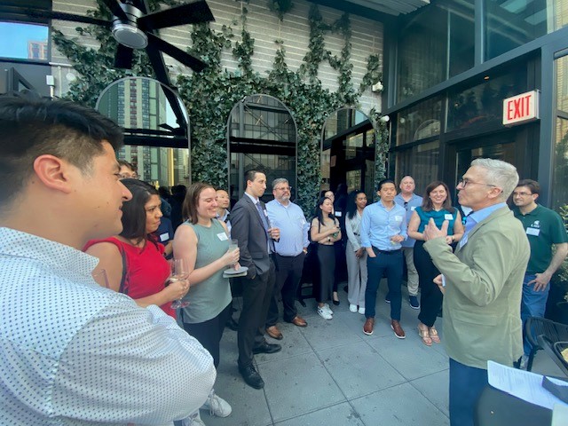 A perfect summer evening at the Castell Rooftop Lounge served as a backdrop for alumni to network.