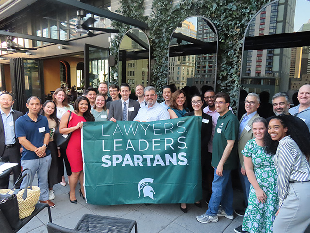 About 25 MSU Law alumni working in New York City, including two student summer interns, met with Interim Dean Michael Sant’Ambrogio last week as part of the Alumni Summer Social events.